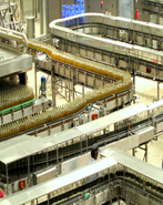 TRANSLINE offers modern conveying line designs with bottle accumulation which regulates the bottleflow. Based on this line regulations the operating speed of the machines are adjusted automatically to ensure smooth running and performance which are calculated based on production line characteristics and synchronised by TRANSLINE control systems.